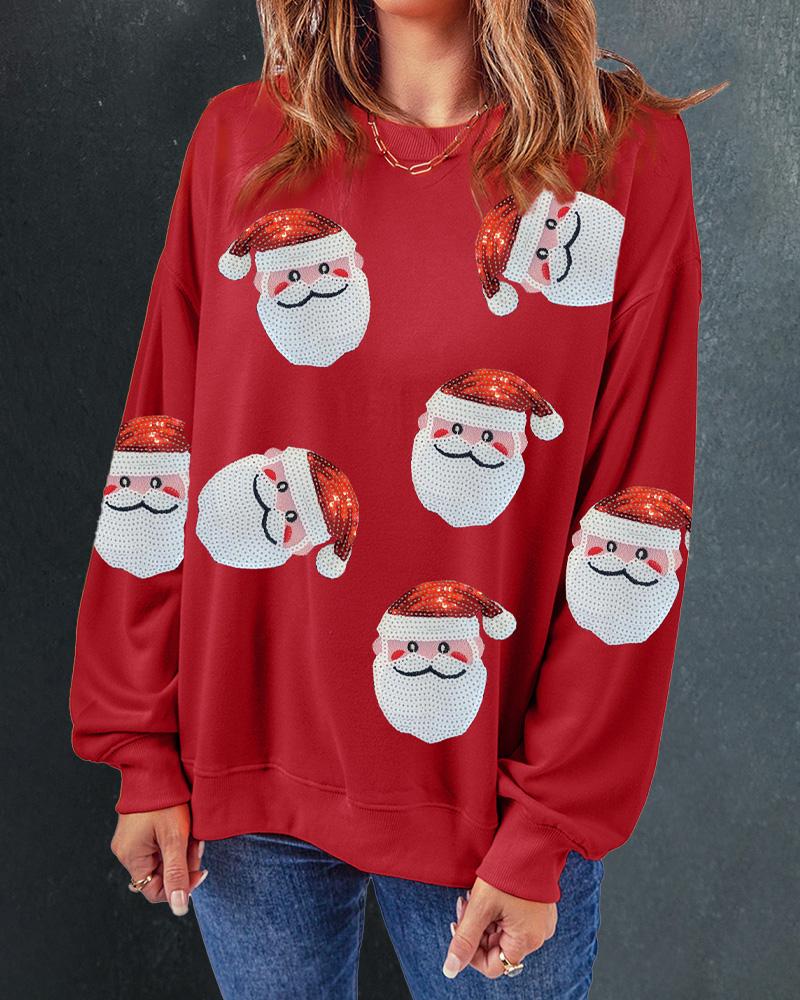 Christmas Santa Claus Pattern Contrast Sequin Sweatshirt