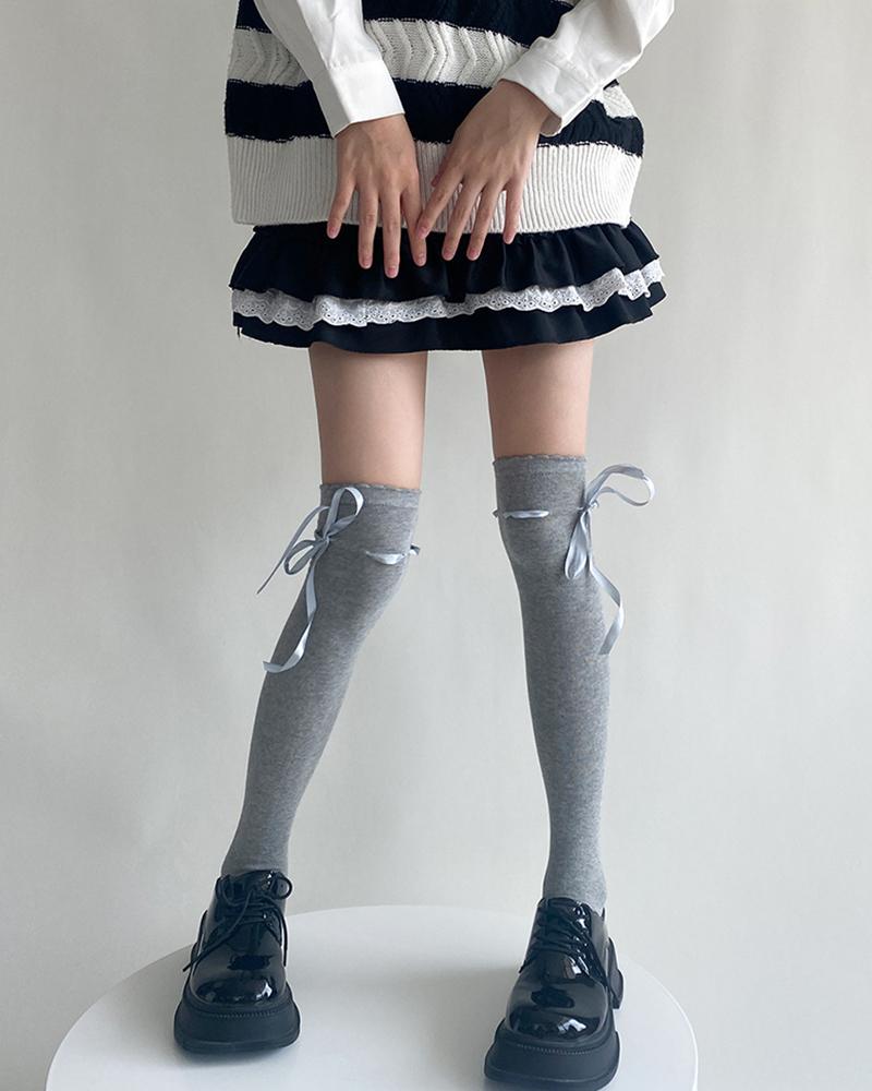 Style:Chic Type:Socks Material:Cotton Pattern Type:Plain Decoration:Tied Detail Occasion:Daily Package Include:1Pair Socks