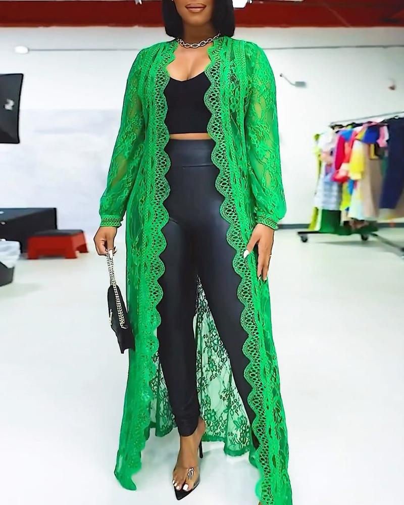 Style:Chic Type:Coat Material:97%Polyester,3%Spandex Neckline:Open Front Sleeve Style:Long Sleeve Length:Long Pattern Type:Plain Decoration:Lace Fit Type:Regular Occasion:Daily Package Include:1*Coat Fabric Elasticity:Slight Stretch Sleeve Type:Regular Sleeve Hem Shaped:Straight Sheer:Semi-Sheer Care Instructions:Machine wash or professional dry clean