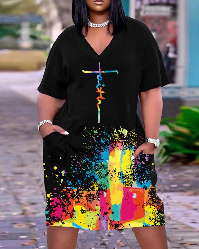 Plus Size Faith Ink Splash Melting Colors All Over Print Casual Dress