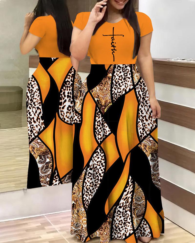 Style:Casual Type:Flared Material:95%Polyester,5%Elastane Neckline:Round Neck Sleeve Style:Short Sleeve Length:Maxi Pattern Type:Baroque,Leopard,Letter Decoration:Ruched Fit Type:Oversized Occasion:Daily Package Include:1* Dress Fabric Elasticity:Non-Stretch Sheer:No Care Instructions:Machine wash or professional dry clean