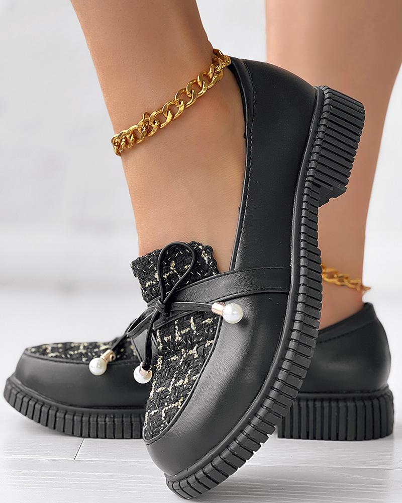Type:Chunky Pattern Type:Plaid Occasion:Daily Toe:Almond Toe Heel Height:Low Heel Package Include:1*Loafers