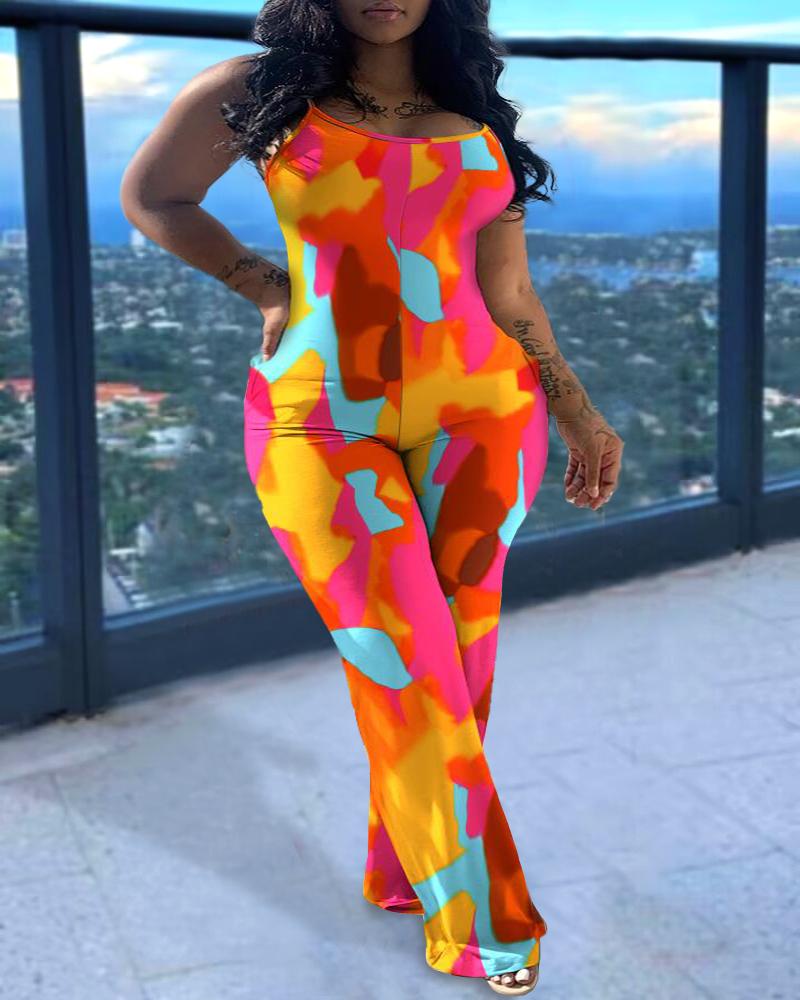 Plus Size Allover Print Scoop Neck Sleeveless Jumpsuit