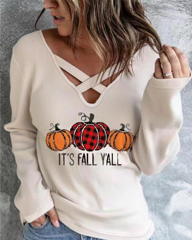 Style:Casual Type:Tee Material:97%Polyester,3%Spandex Neckline:V-Neck Sleeve Style:Long Sleeve Length:Regular Pattern Type:Graphic,Halloween Decoration:Criss Cross Fit Type:Regular Occasion:Halloween Package Include:1*Top
