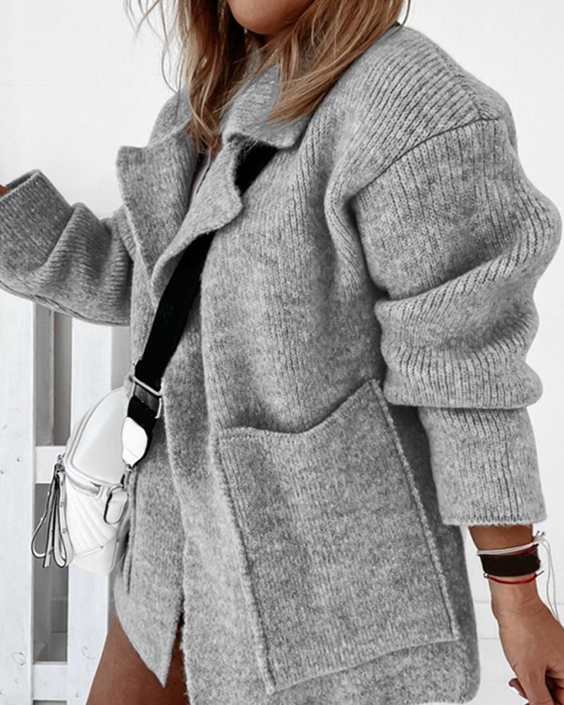 Style:Casual Type:Cardigan Material:Rib-Knit Neckline:Open Front Sleeve Style:Long Sleeve Length:Regular Pattern Type:Plain Fit Type:Regular Occasion:Daily Package Include:1*Cardigan