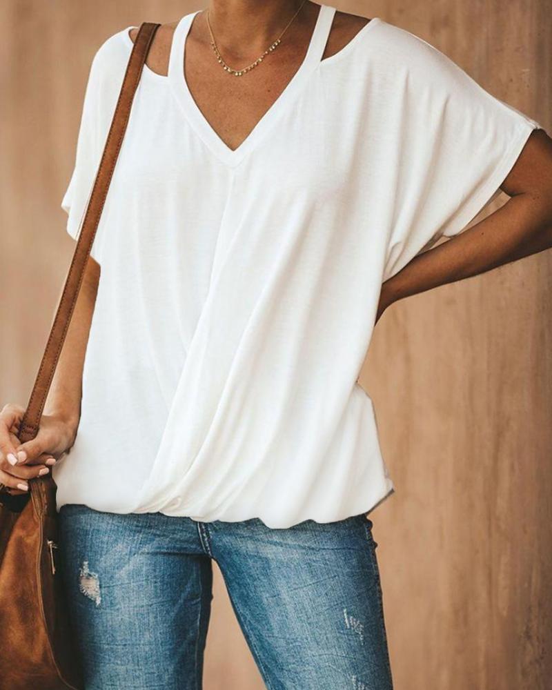 Style:Casual Type:Tee Material:97%Polyester,3%Spandex Neckline:V-Neck Sleeve Style:Short Sleeve Length:Regular Pattern Type:Plain Decoration:Cutout Fit Type:Regular Occasion:Daily Package Include:1*T-Shirt Fabric Elasticity:Slight Stretch Sheer:No Care Instructions:Machine wash or professional dry clean