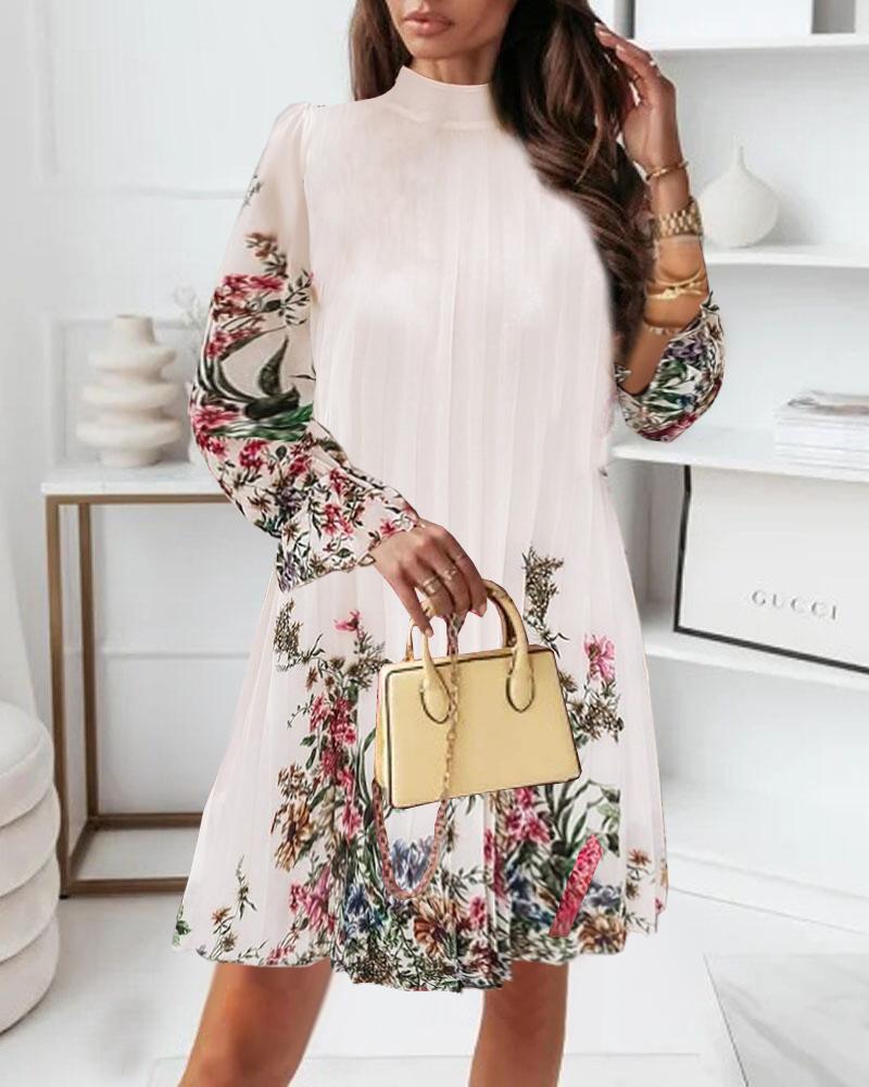 Floral Print Pleated Casual Dress