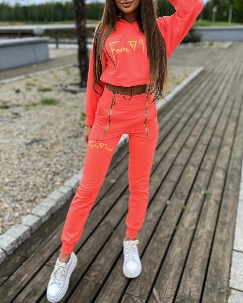 Letter Print Hoodie & Zipper Design Sweatpants Set