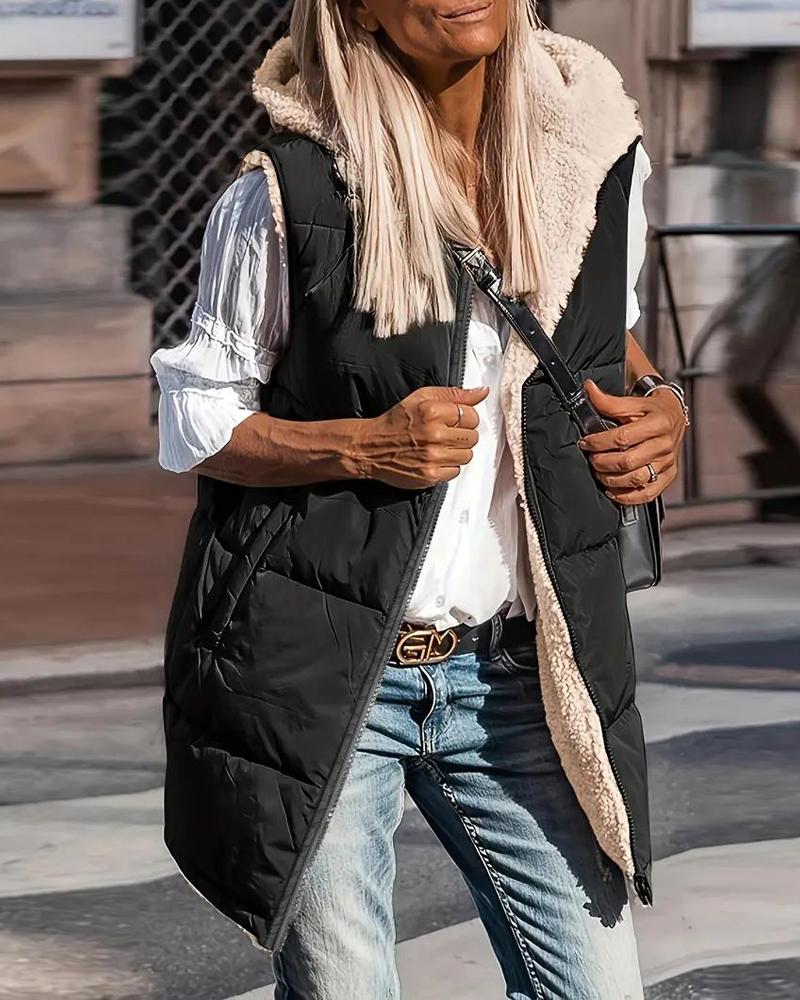 Zipper Design Hooded Versatile Longline Puffer Vest Coat