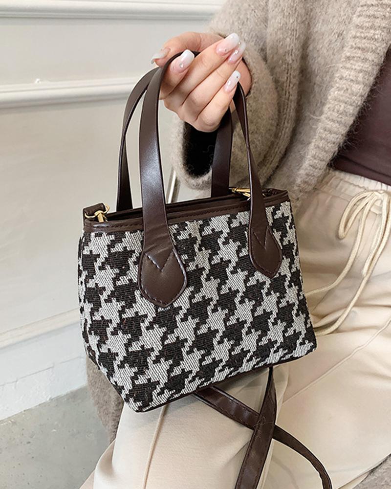 Houndstooth Zipper Design Satchel Bag