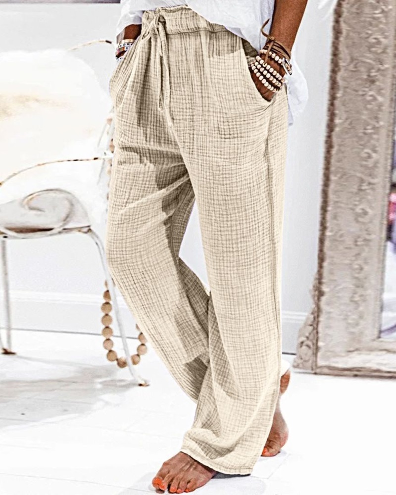 Pocket Design Drawstring Casual Textured Pants