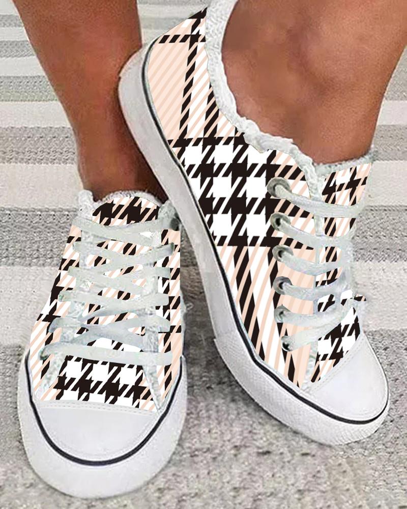 Houndstooth Pattern Slip On Muffin Sneakers