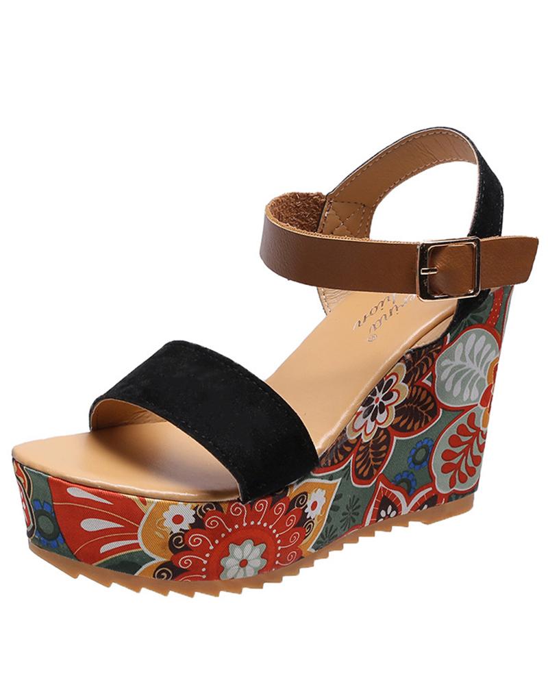 Style:Chic Type:Wedge Shoes Material:PU Pattern Type:Floral Occasion:Daily Toe:Peep Toe Heel Height:High Heel Package Include:1*Wedge Sandals