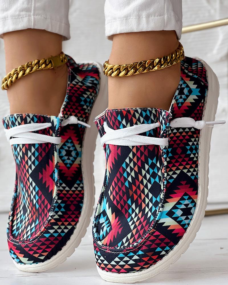 Aztec Geometric Print Lace-up Casual Slip-On