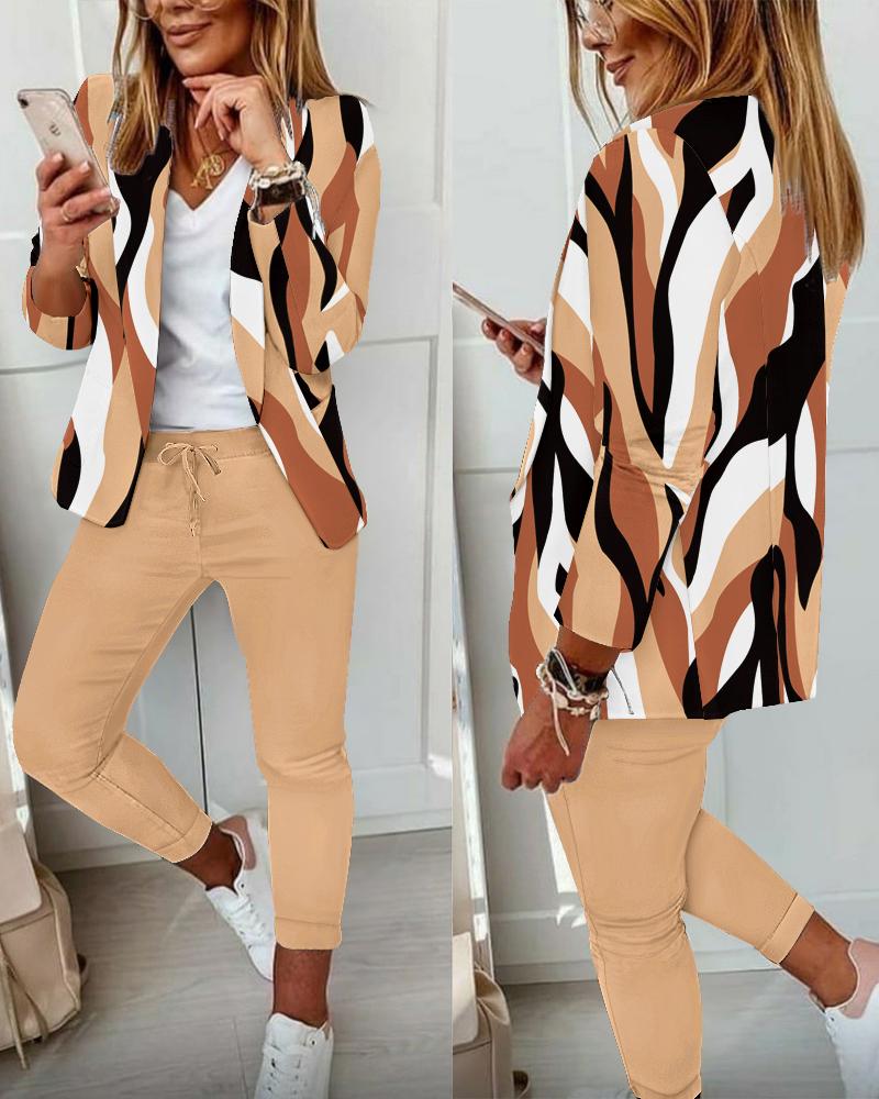 Lapel Neck Blazer Coat & Drawstring Pants Set
