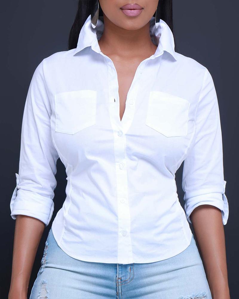 Buttoned Pocket Design Roll Up Sleeve Top