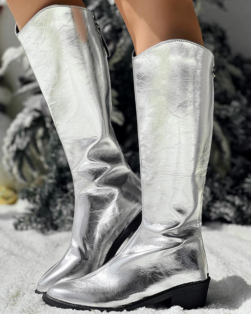 Metallic Chunky Heel Cowboy Style Calf Boots