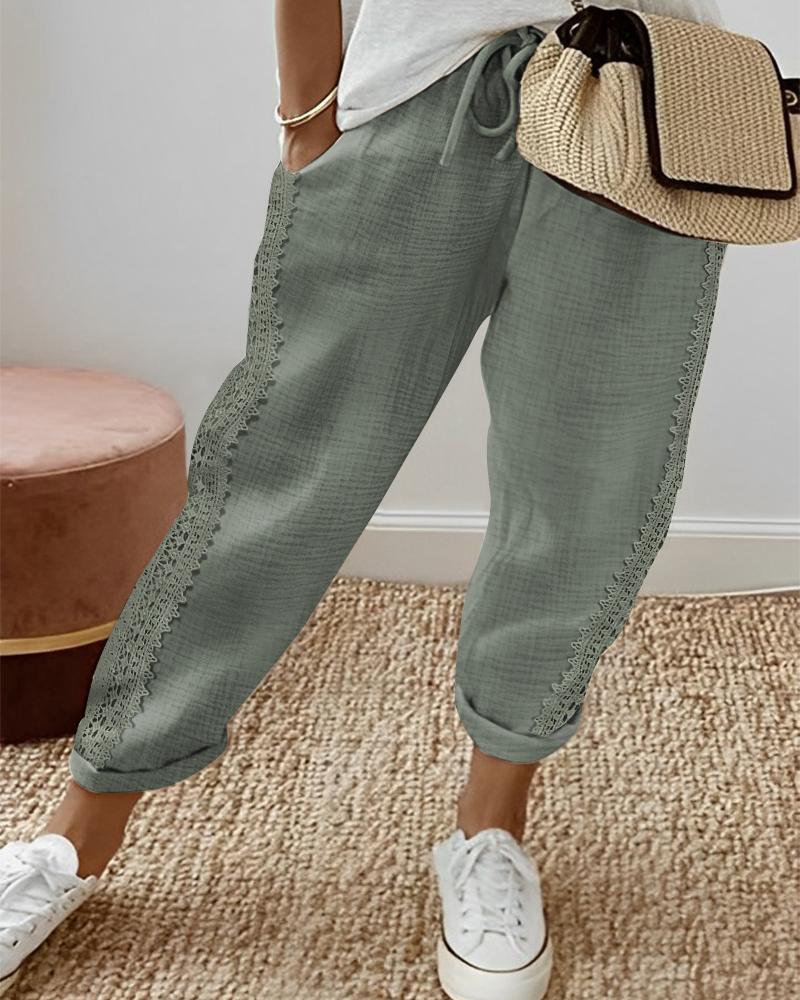 Style:Casual Type:Pants Material:100%Polyester Length:Long Pattern Type:Plain Decoration:Contrast Lace,Drawstring,Pocket Fit Type:Regular Occasion:Daily Package Include:1*Pants Fabric Elasticity:Slight Stretch Sheer:No Care Instructions:Machine wash or professional dry clean