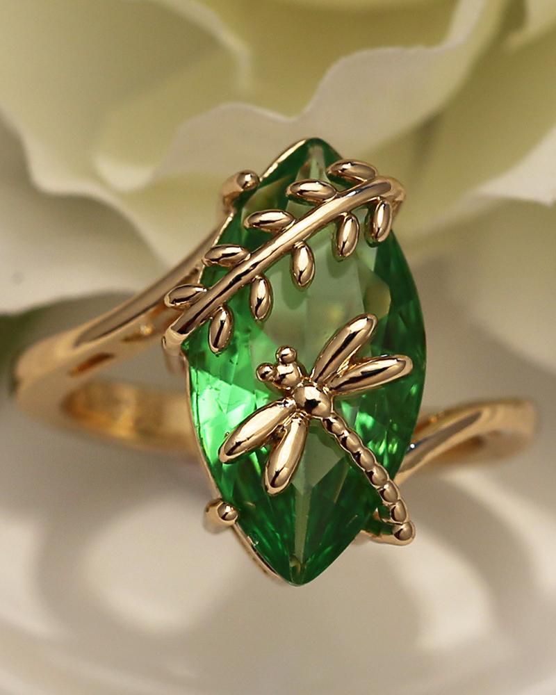 1pc Vintage Dragonfly Oval Crystal Stone Ring