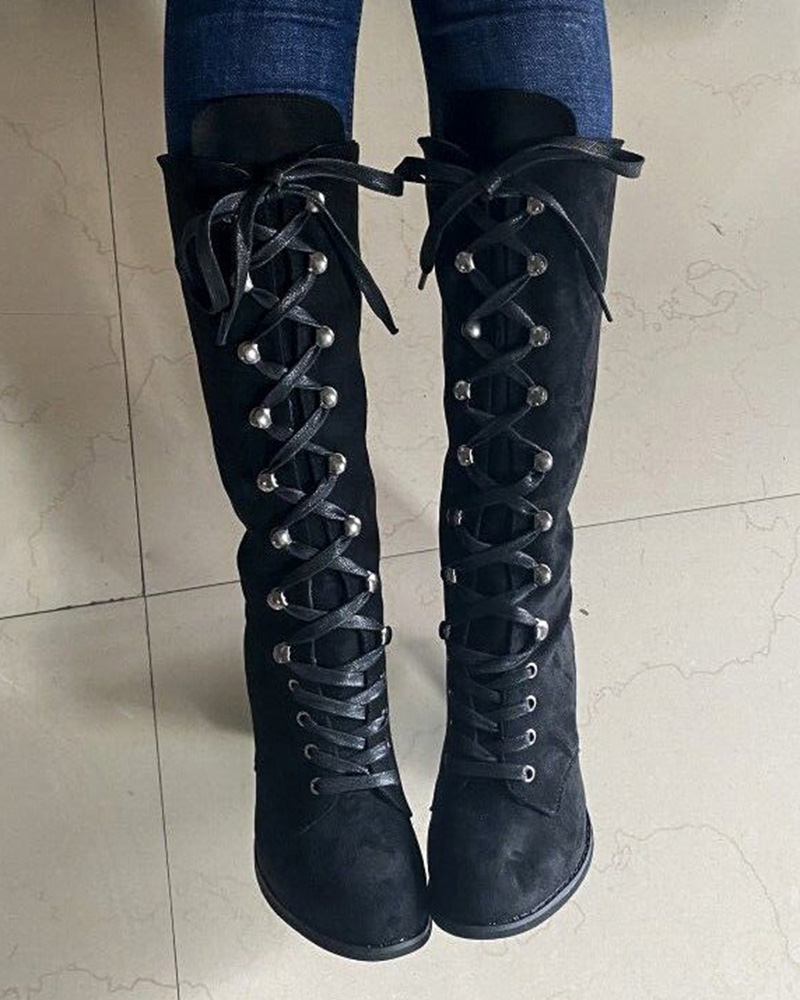 Lace-up Chunky Heel Boots