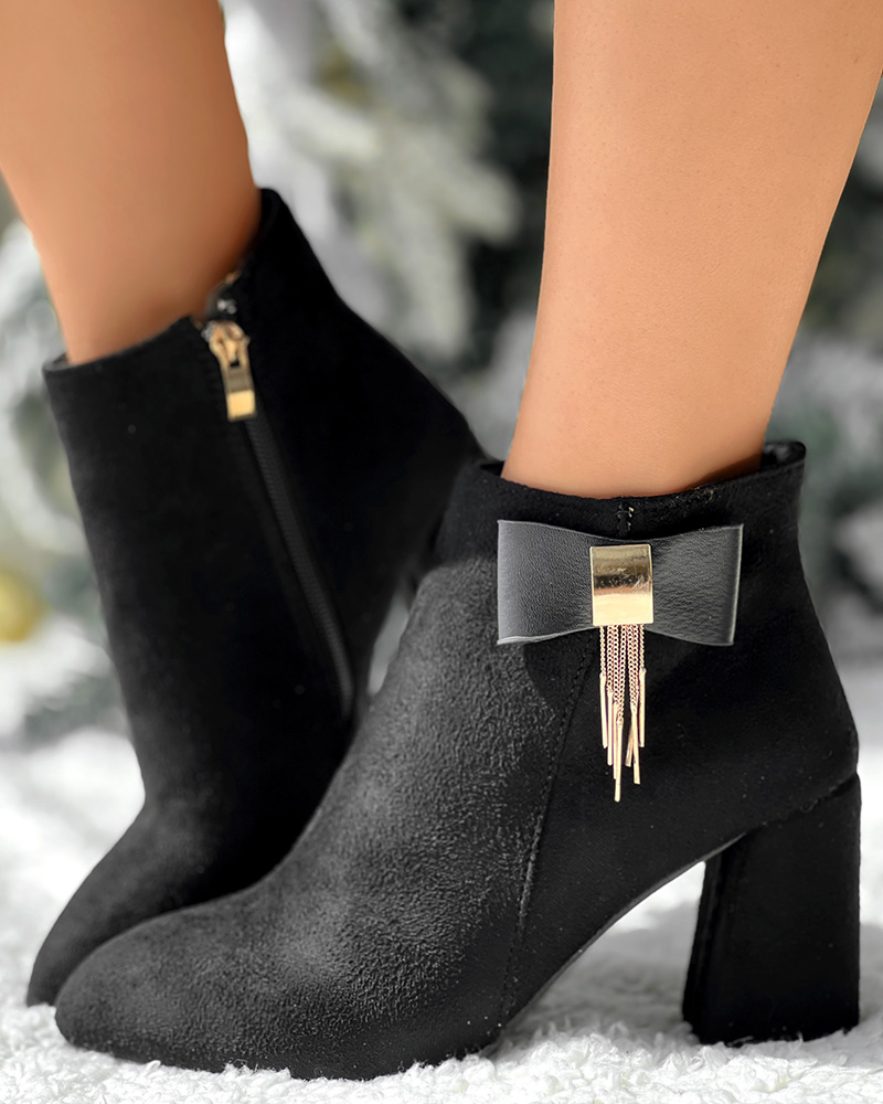 Suede Bowknot Chain Tassel Decor Chunky Boots