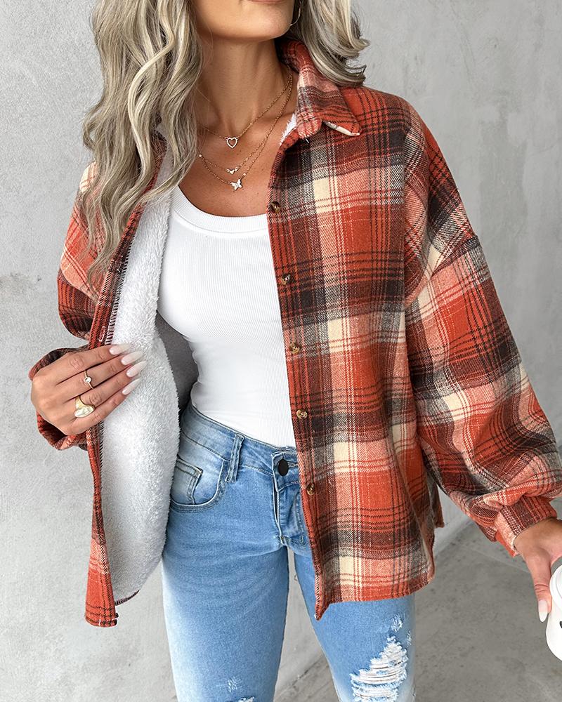 Style:Chic Type:Shacket Material:Polyester Neckline:Turn-down Collar Sleeve Style:Long Sleeve Length:Regular Pattern Type:Plaid Decoration:Button Fit Type:Regular Occasion:Daily Package Include:1*Shacket Fabric Elasticity:Non-Stretch