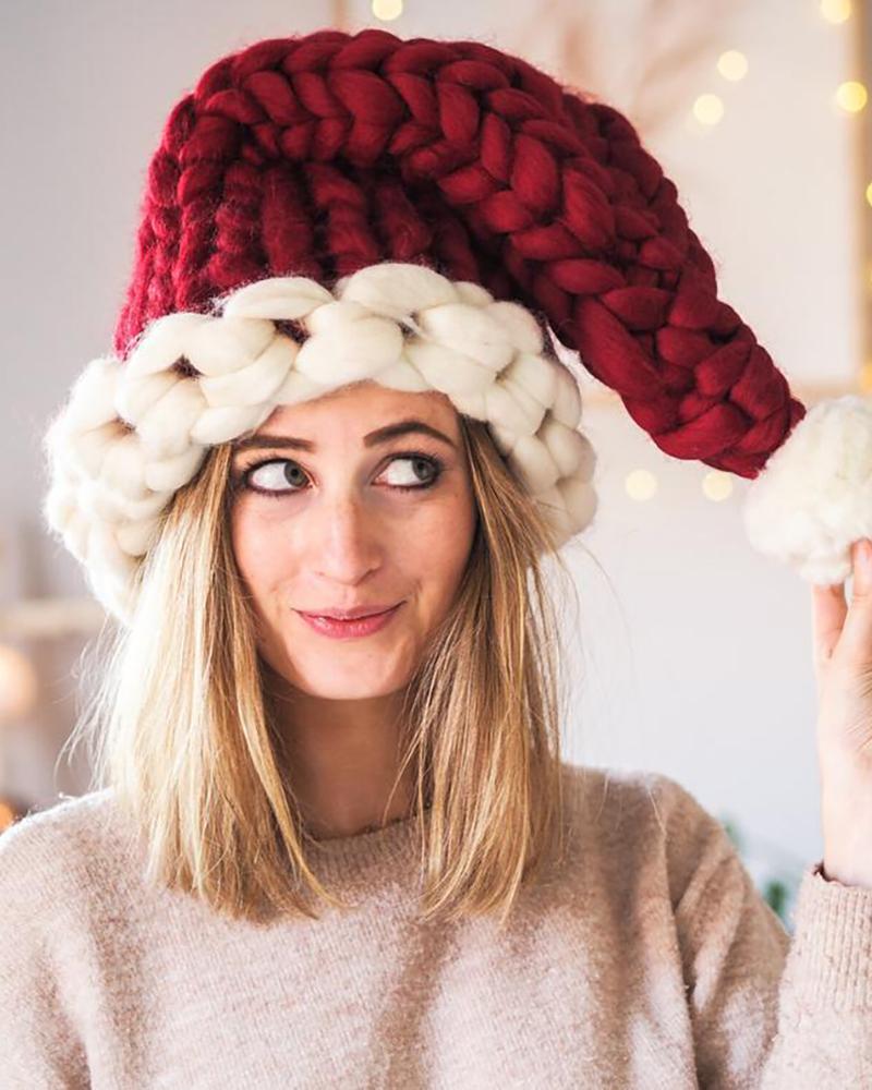 Material:Rib-knit Pattern Type:Christmas Decoration:Pom Pom,Braided Package Include:1* Hats