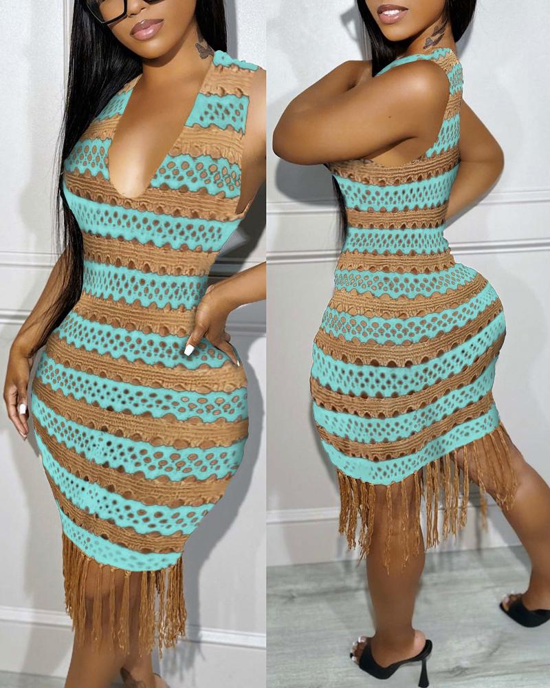 Colorblock Tassel Design Crochet Cover Up Dress