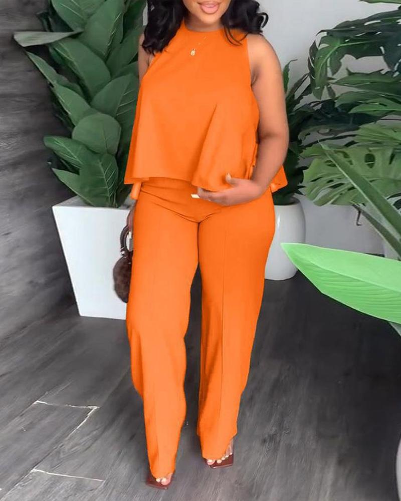 Style:Elegant Type:Pants Sets Material:95%Polyester,5%Elastane Neckline:O-neck Sleeve Style:Sleeveless Length:Long Pattern Type:Plain Decoration:Others Fit Type:Regular Occasion:Daily,Work Package Include:1*Pants Set Fabric Elasticity:Medium Stretch Sheer:No Care Instructions:Machine wash or professional dry clean Waist Line:High Waist