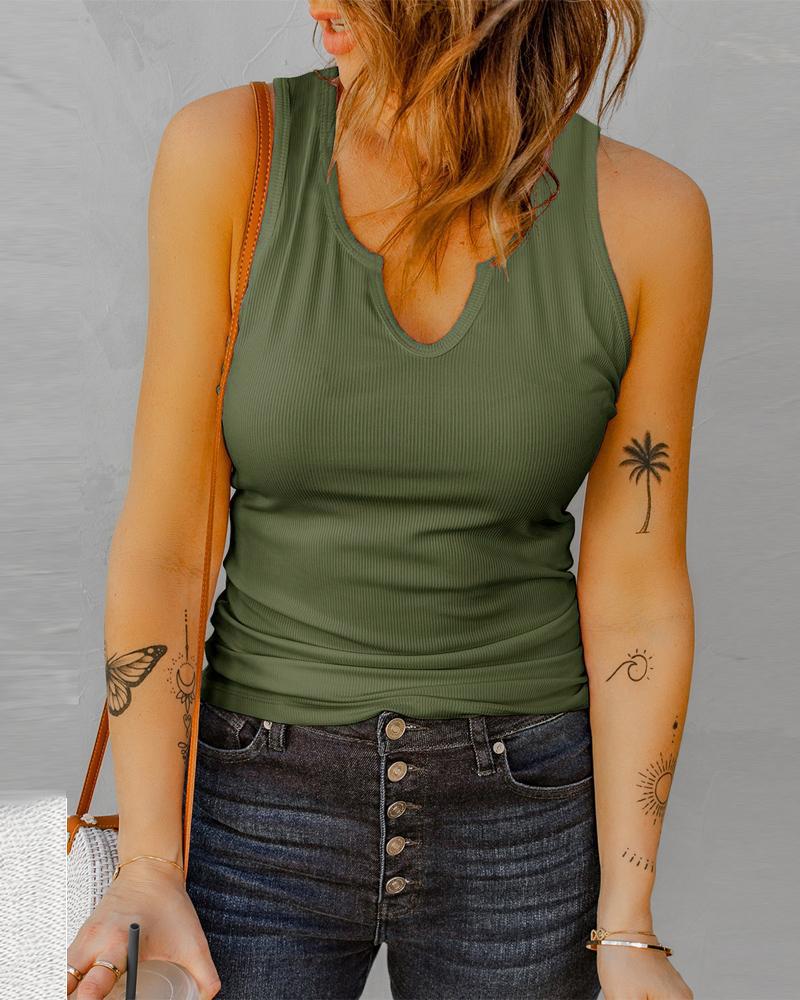 Plain Notch Neck Casual Tank Top