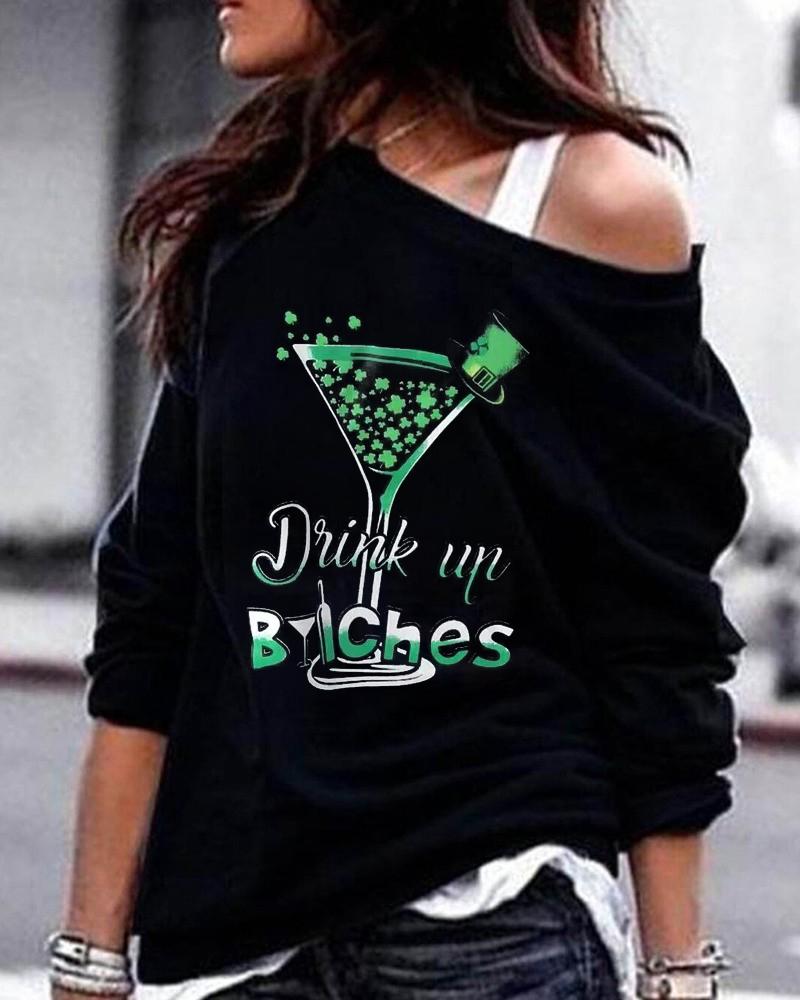 Style:Casual Type:Sweatshirt Material:Cotton Blends Neckline:One Shoulder Sleeve Style:Long Sleeve Length:Regular Pattern Type:Floral,Letter Decoration:St.Patrick's Day Fit Type:Regular Occasion:Daily Package Include:1*Sweatshirt Fabric Elasticity:Non-Stretch Sheer:No Care Instructions:Machine wash or professional dry clean