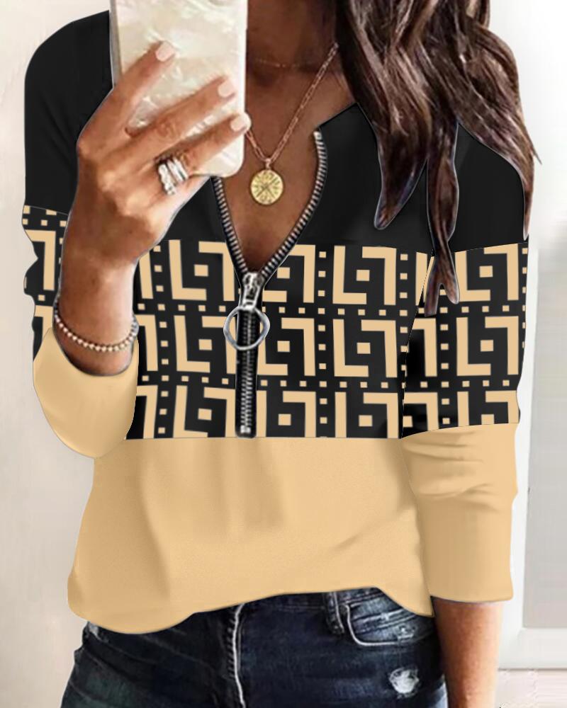 Style:Casual Type:Tee Material:100%Polyester Neckline:Round Neck Sleeve Style:Long Sleeve Length:Regular Pattern Type:Colorblock,Geometric Decoration:Zipper Fit Type:Regular Occasion:Daily Package Include:1*Top Fabric Elasticity:Slight Stretch Sheer:No Care Instructions:Machine wash or professional dry clean