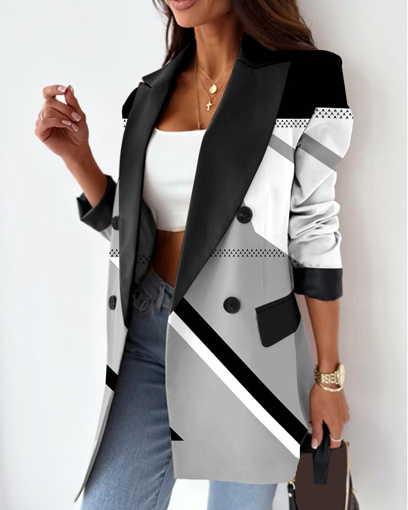 Geometric Print Double Breasted Blazer Coat