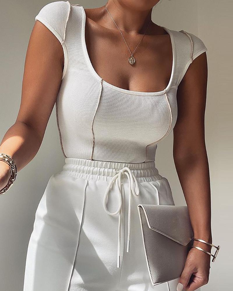 Plain U Neck Bodycon T-Shirt