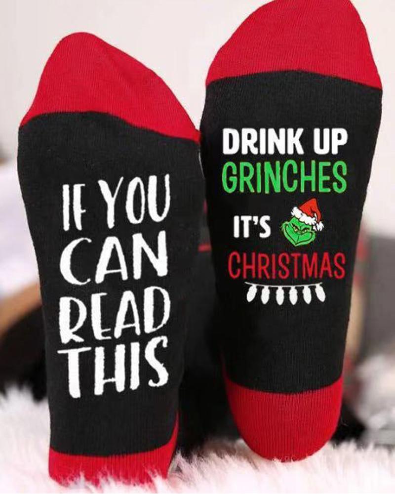 1Pair Christmas Graphic Letter Print Socks