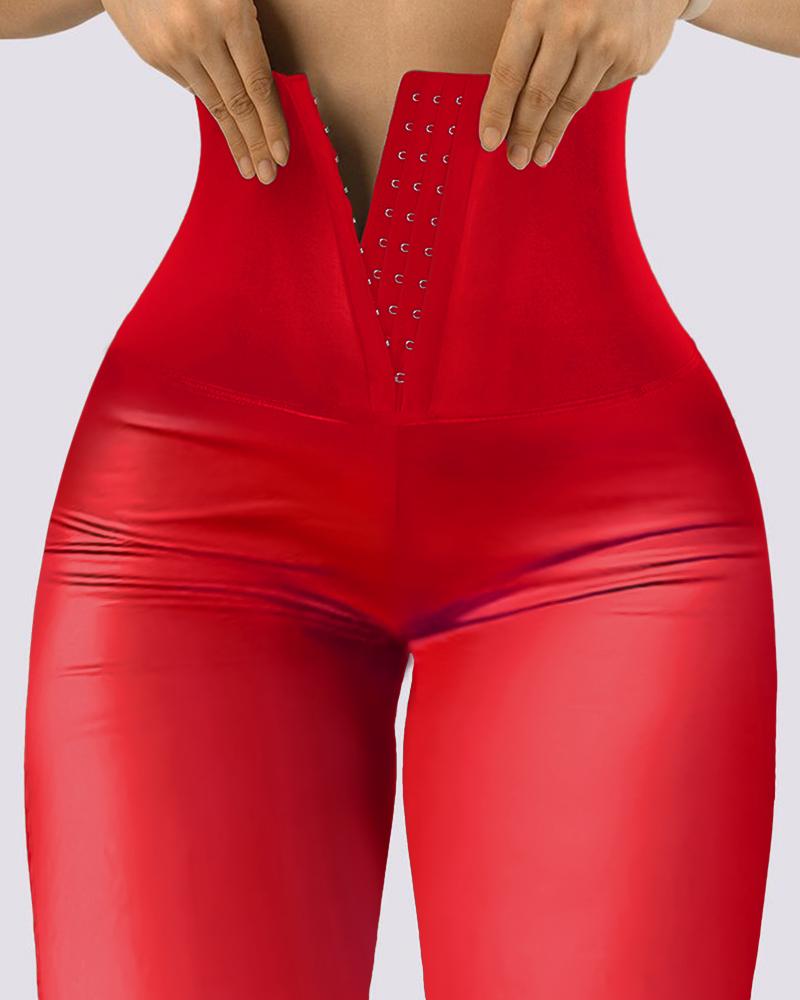 Hook Front Liquid Gloss Sauna Sweat PU Leather Leggings