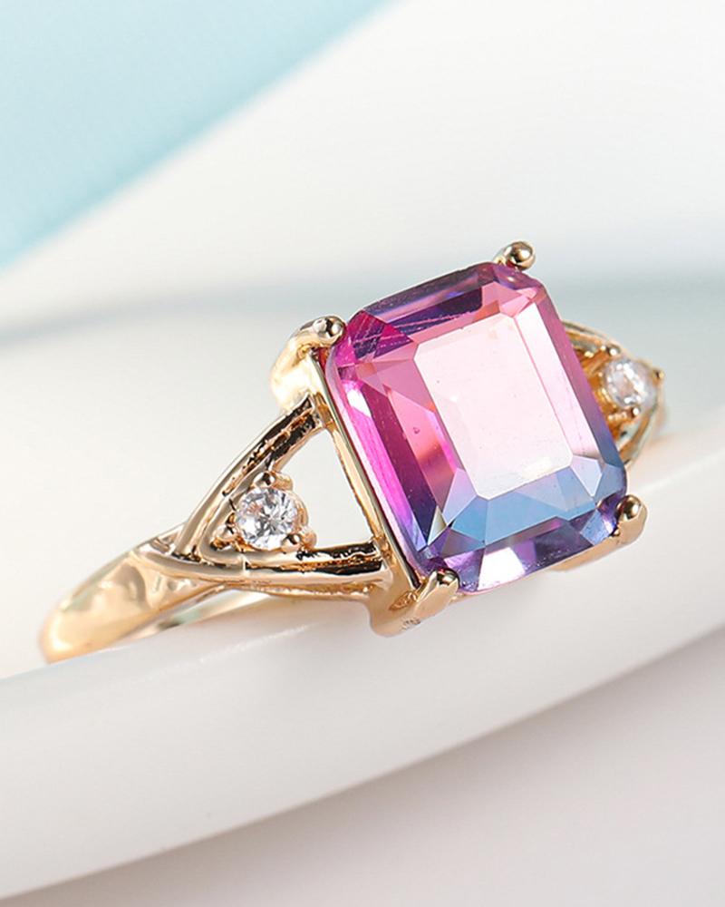 1pc Gradient Color Square Crystal Stone Ring
