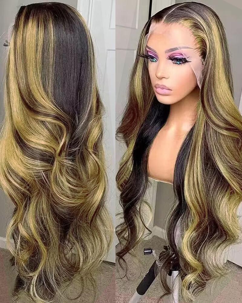 Long Highlight Ombre Body Wave Lace Front Synthetic Hair Wig