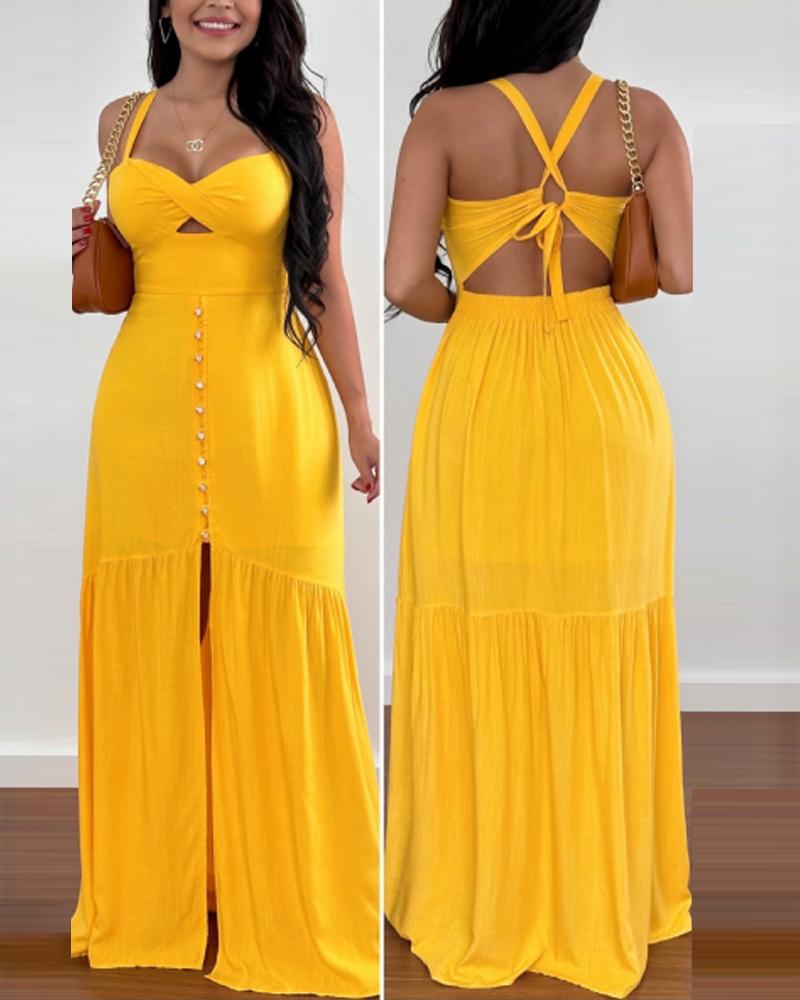 Crisscross Backless Split Thigh Twisted Maxi Dress