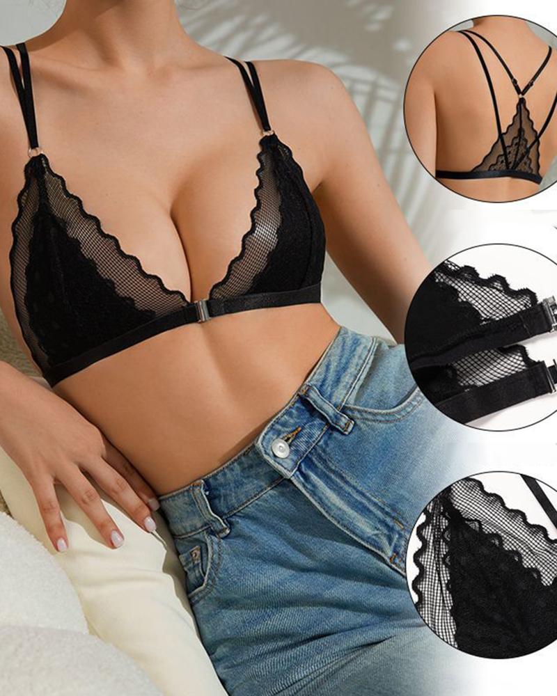 Style:Sexy,Romantic Type:Bralette Material:90%Nylon,10%Elastane Neckline:Low Cut Sleeve Style:Sleeveless Length:Regular Pattern Type:Plain Decoration:Contrast Lace,Fishnet,Hollow-out Fit Type:Skinny Occasion:Daily Package Include:1*Bra