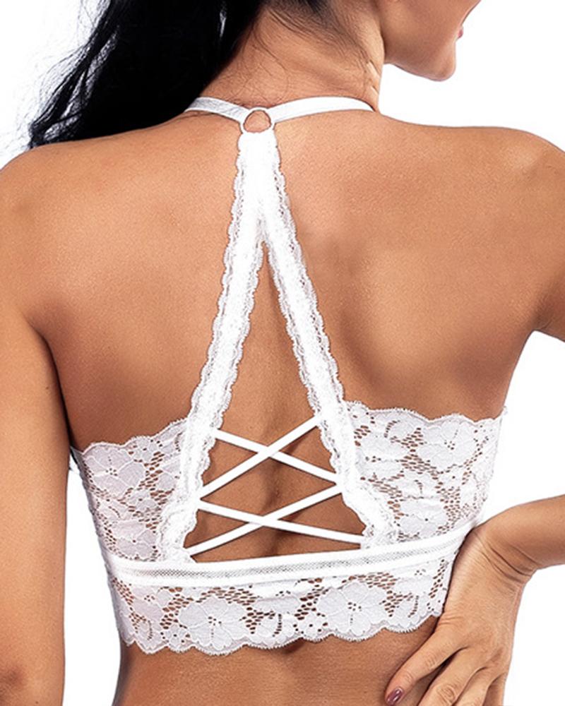 Crochet Lace Crisscross Wireless Lifting Bra