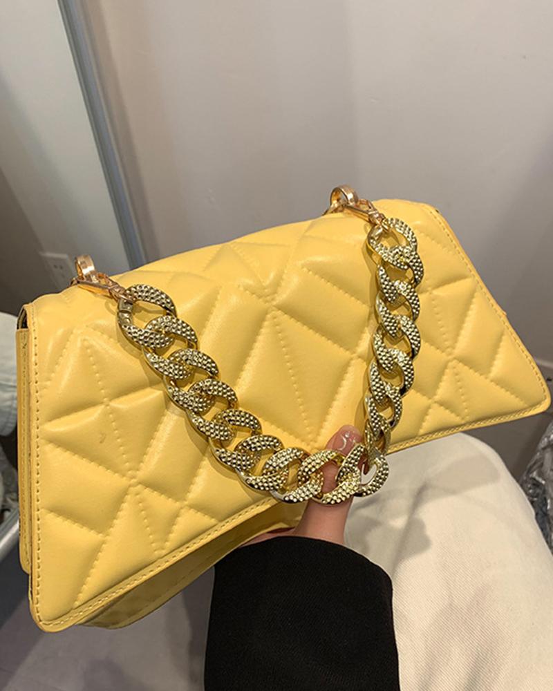 Chain Strap Zipper Design Quilted Crossbody Bag