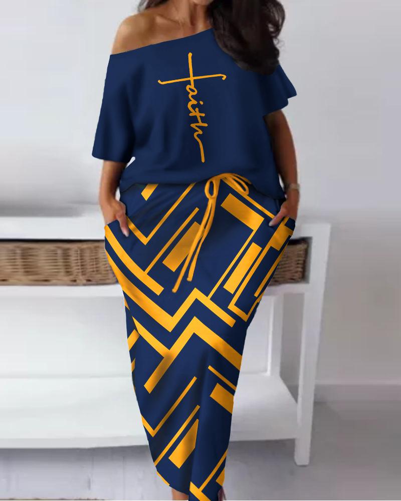 Plus Size Faith Geometric Print Casual Top & Skirt Set