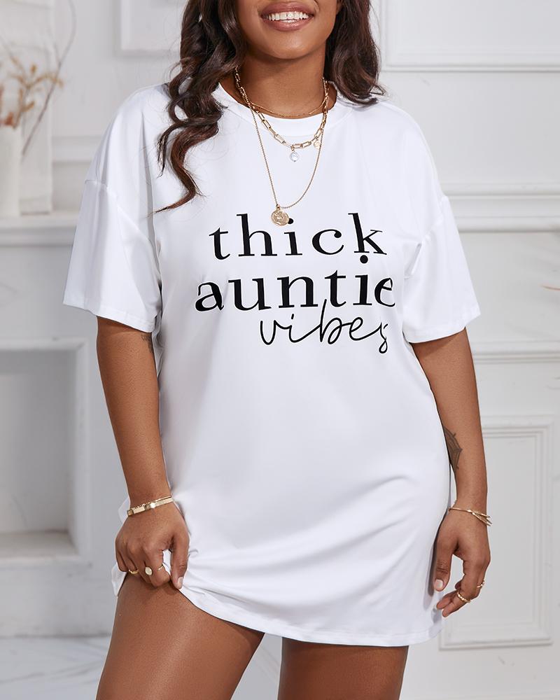 Plus Size Thick & Untie Vibes Print Casual Tee Dress