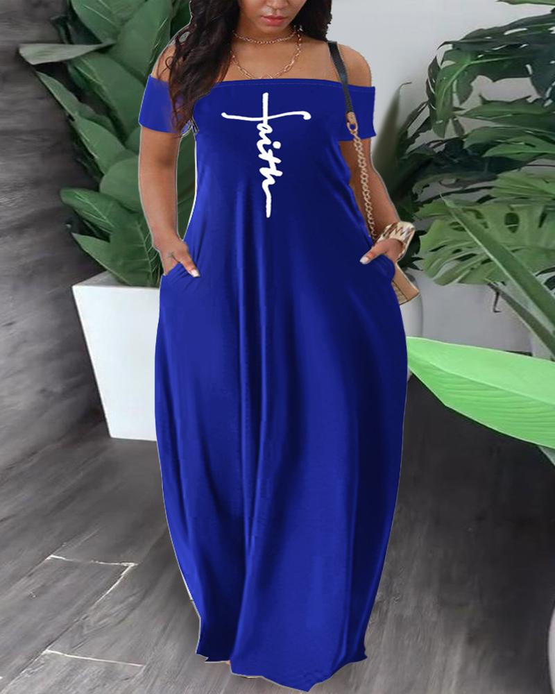 Style:Chic Type:Straight Material:95%Polyester,5%Elastane Neckline:Off the Shoulder Sleeve Style:Short Sleeve Length:Maxi Pattern Type:Letter Decoration:Pocket Fit Type:Regular Occasion:Daily,Vacation Package Include:1* Dress Fabric Elasticity:Medium Stretch Sheer:No Care Instructions:Machine wash or professional dry clean