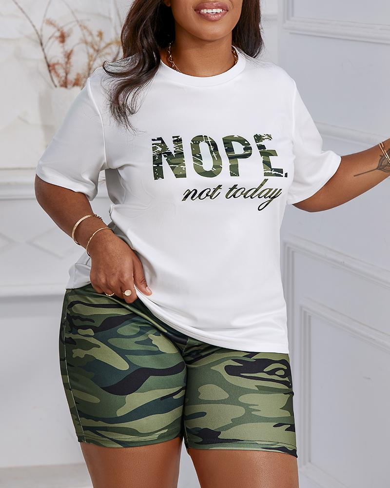 Plus Size Nope Not Today Camo Print Top & Shorts Set