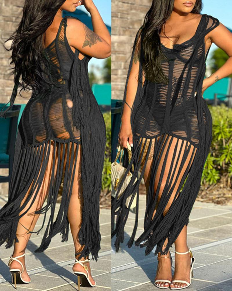 Crochet Tassel Design Cover Up Dress