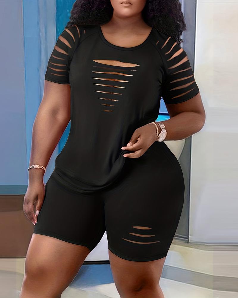 Style:Chic Type:Shorts Set Material:94%Polyester,6%Elastane Neckline:Round Neck Sleeve Style:Short Sleeve Length:Above Knee Pattern Type:Plain Decoration:Cutout Fit Type:Regular Occasion:Daily Package Include:1*Shorts Set Fabric Elasticity:Slight Stretch Sheer:No Care Instructions:Machine wash or professional dry clean