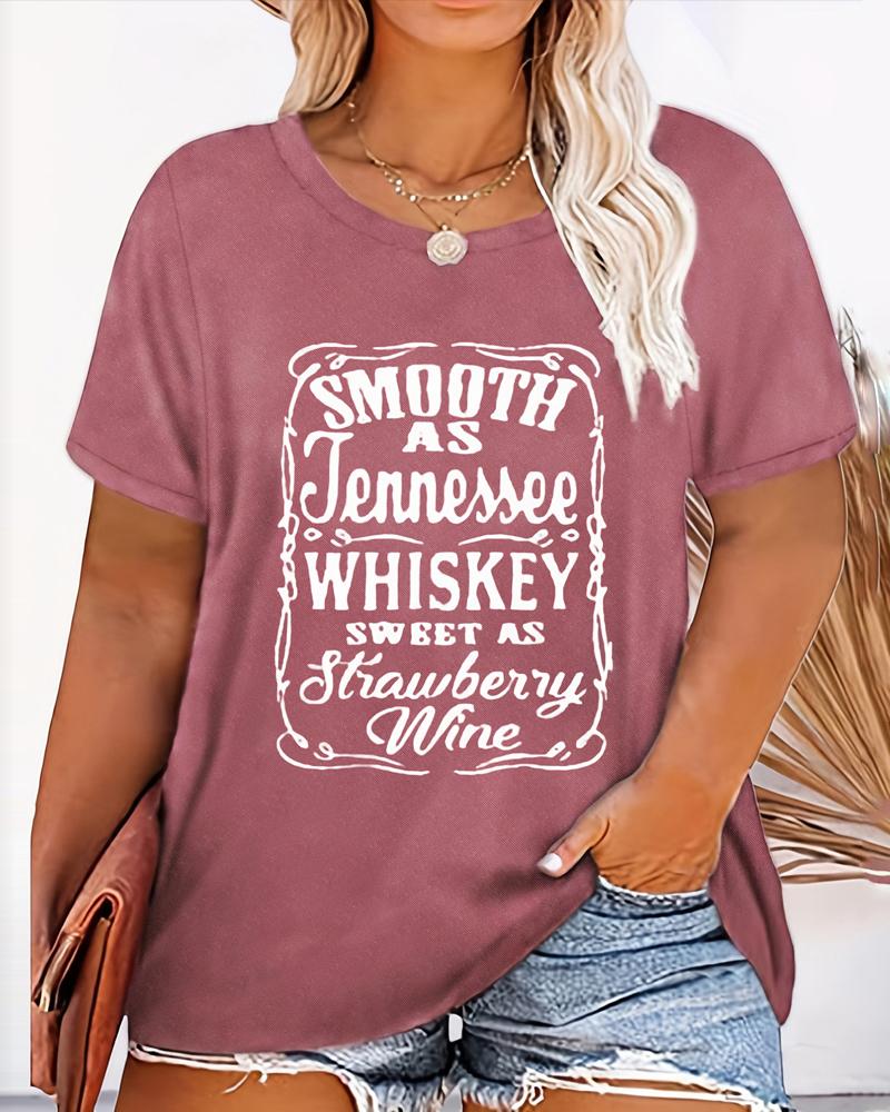 Plus Size Whiskey Sweet As Strawberry Wine Print Casual T-shirt