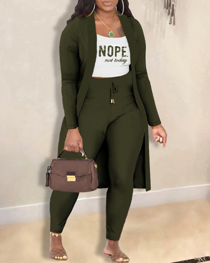 Style:Casual Type:Suit Set Material:94%Polyester,6%Elastane Neckline:Open Front Sleeve Style:Long Sleeve,Sleeveless Length:Long Pattern Type:Slogan Decoration:Drawstring Fit Type:Regular Occasion:Daily Package Include:1*Pants Set (With Coat) Fabric Elasticity:Slight Stretch